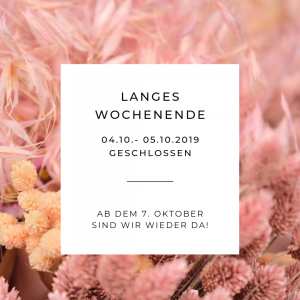 am 4. und 5. Oktober ist unser Geschäft geschlossen. Ab Montag, den 7. Oktober, sind wir wieder für euch da!